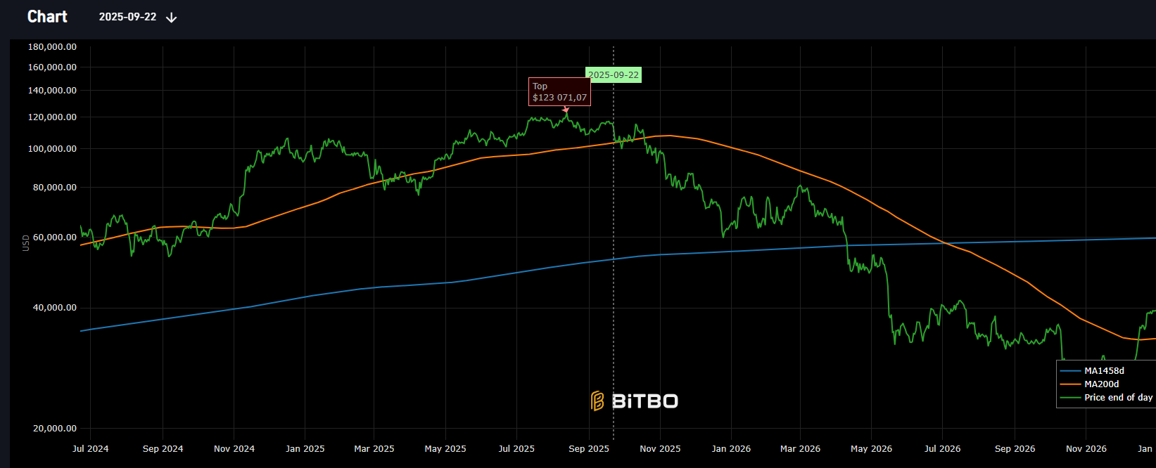 Nie spodziewam się jednak drastycznej korekty na Bitcoinie jak dawniej – raczej delikatnej, do poziomu –38,2%, czyli ok. 80 tys. USD. Na altach sytuacja będzie gorsza, bo tam nie ma amortyzacji dużego kapitału. Klasyczne spadki o –80% do –90% są bardzo możliwe, mimo że wiele z nich i tak jest już na minimach sprzed obecnej hossy. To będzie bolesne – tym bardziej, że mało kto faktycznie trzyma Bitcoina. Większość nowych graczy siedzi głównie na solanowych shitcoinach bez fundamentów, a tam zjazd sięgnie nawet –95%. Poniżej symulacja ’Bitcoin Cycle Repeat Chart’ na kolejny rok.